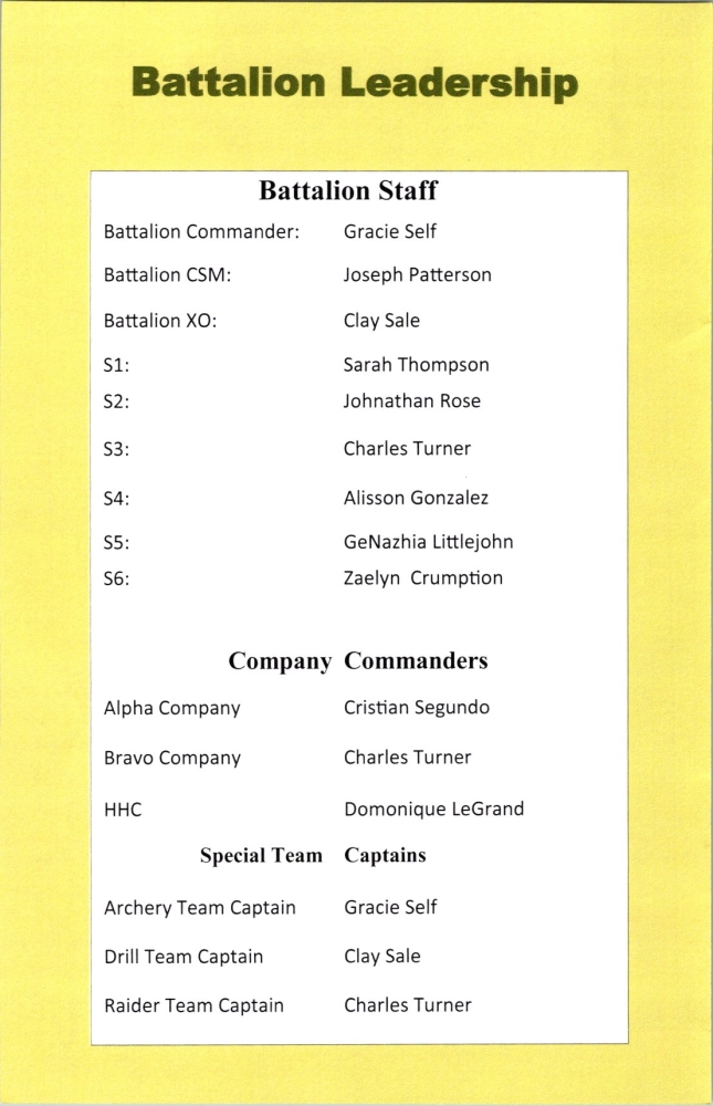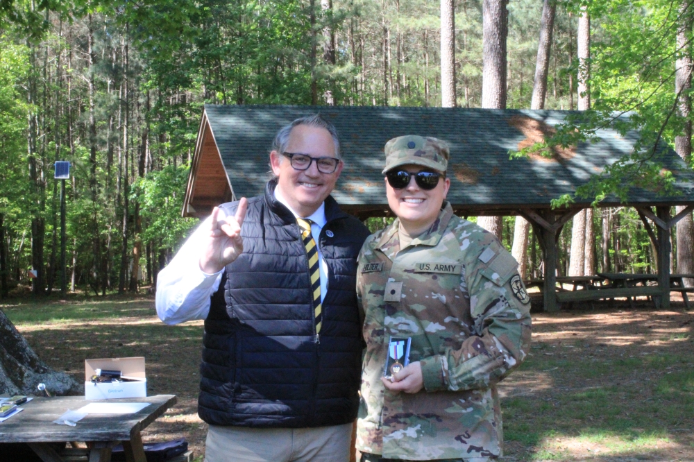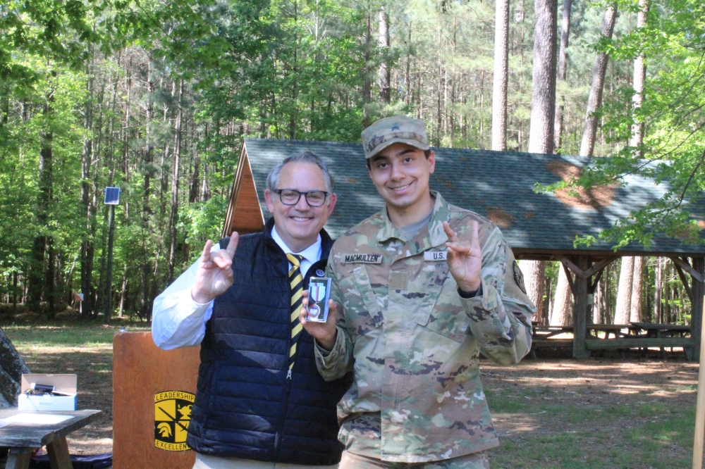 LTC Kevin Leitch presented ROA ROTC Award Certificates and medal sets to Cadet Holman and Cadet MacMullen. Participating in the awards ceremony were approximately 120 cadets and 20 instructor cadre. According to LTC Leitch, the Wolfpack" battalion will commission 22 officers this term.